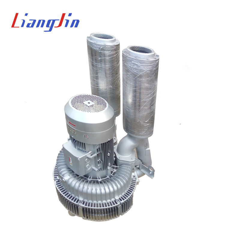 接通電源后,風機旋轉(zhuǎn),因為雙葉輪有凹槽設計,會帶動空氣流動,所以空氣通過進風口處進入泵體內(nèi),空氣在里面攪動,每個凹槽經(jīng)過漩渦式式的增壓,一道一道的循環(huán)增壓,形成強大的氣流能量,通過出氣口排出泵體外,以供使用。