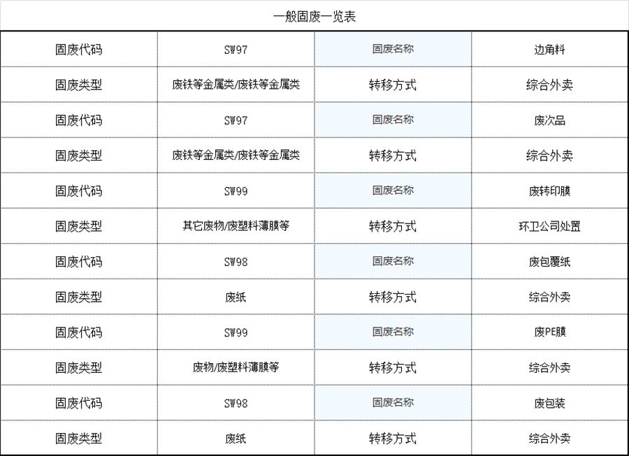 一般固廢一覽表